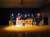 In der Theatergruppe ÜberHall spielen Amateurdarsteller unter professioneller Regie seit 30 Jahren zusammen. Das ca. 1-stündige Stück reifte in einem kontinuierlichen Entwicklungsprozess auf der Basis von Improvisationen zu einer teils amüsanten, teils bitterbösen Parabel.
