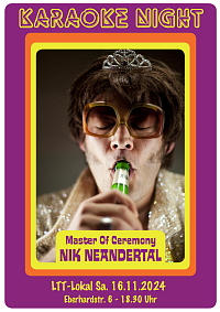 Nach dem Motto „Karaoke ist wieder da!“ präsentiert der charmante Confroncier Nik Neandertal seine aus dem Tübinger Pausenhof bekannte Trash Karaoke Night erstmalig im LTT-Lokal.