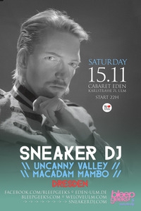 <p>Samstag, 15. November 2014, 22:00 Uhr <br /> BLEEPGEEKS FEAT. DJ SNEAKER <br /><br /> Uncanny Valley /<br />Macadam Mambo /<br />Dresden / <br /><br /> Ob als Produzent, DJ, Liveact, Veranstalter der ElektroTekknoKlash-Clubnächte in Jena oder als einer der Betreiber des gleichnamigen Labels – was Sneaker macht, macht er erst nach reiflicher Überlegung, dann aber mit Substanz (Er liebt gewagte Musik, welche Stimmungen provoziert, die in unser Leben hineinwirken will, und das mit einem Schuss befreiender Selbstironie). Schon früh von Chicago und Detroit verführt, sind es zudem die obskuren Italo-, New Wave oder Minimal Synth-Perlen, die seine Live- und DJ-Sets tief und bewegend machen oder seine Produktionen und „Dunkeltier“-Edits mit dem gewissen dreckig-analogen Sneaker-Touch ausstatten! Wenn er mal nicht über die Tanzmusikgeschichte reflektiert, pendelt der bildende Künstler zwischen seinen Teilzeit-Heimatstädten Dresden, Jena und Berlin hin und her oder begibt sich auf ausgedehnte Reisen in seiner 2. Heimat Indonesien! Mit seinem kratzbürstigen Monster „You Think You Think!“ auf der #UV004 ist er festes Mitglied der Uncanny Valley-Patchworkfamilie geworden und hat die Sets von Daniel Bell, Cassius, Deetron und die aktuelle Fabric-CD von Daniel Avery bereichert. Nach dem Feature „Heteronomous“ auf Jacob Korn’s Debutalbum folgt nun die Solo-EP. SNEAKER DJ stellt im Rahmen einer Tour die kürzlich erschienene "Uncanny Valley Records Compilation" im Eden mit vor. Es geht in Richtung Italo, Neo-Disco, Wave, Acid und Jack!</p>