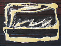 Weißblech als Malgrund, sowie Kaltglasur und Eisenoxid als strukturgebende Mittel.