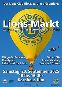 Am Samstag, dem 20. September, wird das Ulmer Kornhaus erneut zum Treffpunkt für gelebte Solidarität, wenn der Lions Club Ulm/Neu-Ulm von 10.00 bis 16.00 Uhr zum traditionellen Lions-Markt einlädt. Hinter dem beliebten Flohmarkt verbirgt sich weit mehr als nur der Verkauf bunter Fundstücke: Seit seinem Debüt im Jahr 1981 engagieren sich die Clubmitglieder jährlich gemeinsam mit ihren Familien und Freunden ehrenamtlich für Organisation, Aufbau und Ablauf der traditionsreichen Benefizveranstaltung. Sämtliche Erlöse daraus kommen regionalen Projekten zugute – diesmal der Wasserwacht Neu-Ulm und der Vesperkirche Ulm.