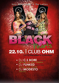 Nach der Sommerpause meldet sich die heißeste DJ Crew der Region in Sachen Black Music im Club OHM zurück. An den Turntables stehen wie gewohnt die DJs Marvelles und Montaro, die das Beste aus den Bereichen RnB, Black und Classics spielen. Kein Crunk, kein Dirty South – only sexy Music 4 the Ladies! Bombastischer Sound in relaxter Atmosphäre, hübsche Frauen soweit das Auge reicht und eine geniale Stimmung machen die "Black Pearls" zu einer der beliebtesten Black Partys in der Region! Im Club Mahatma runden die DJ´s C.S.Bore, Funked & Modesto auf 3 Floors das Programm mit Oldschool HipHop,Soul, Elektro, House, Pop, Charts & Party ab.