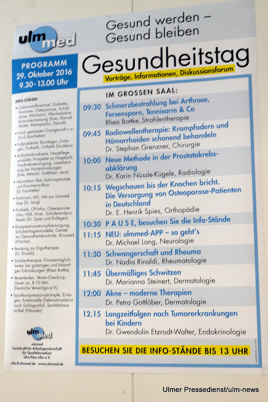 Datum: 29.10.16   Ort: Stadthaus Ulm   Veranstaltung: 12.ulmmed-Gesundheitstag